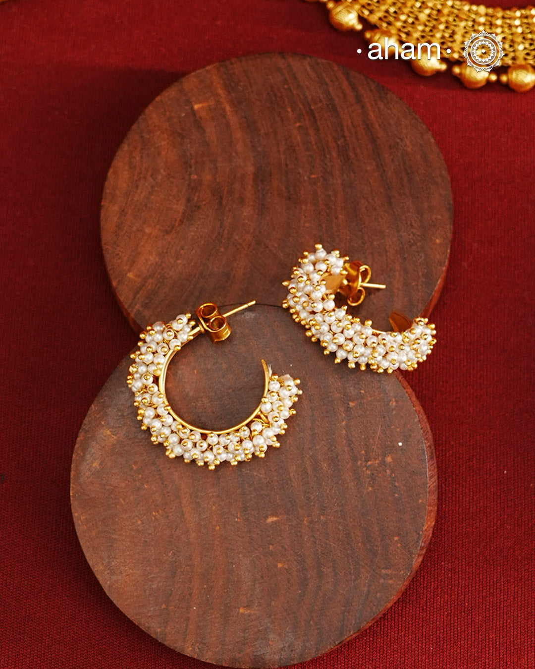 These Half Hoop Pearl Earrings are a must have in everyones wardrobe. So easy to pair with most outfits. Wear it with your Indian or contemporary wear. Crafted in 925 silver with cultured fresh water pearls.