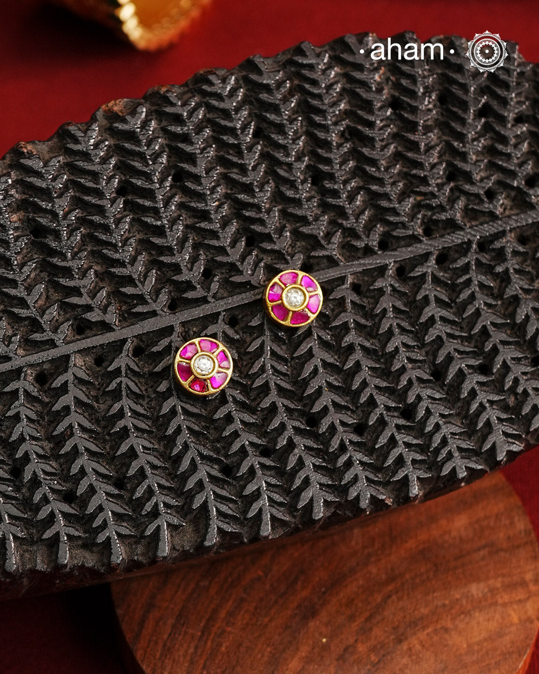 If you someone who like to wear small, minimal yet festive earrings then this one is for you. Little mini kundan work earrings crafted in 92.5 silver with gold polish. Perfect for small celebrations and everyday dressing up.