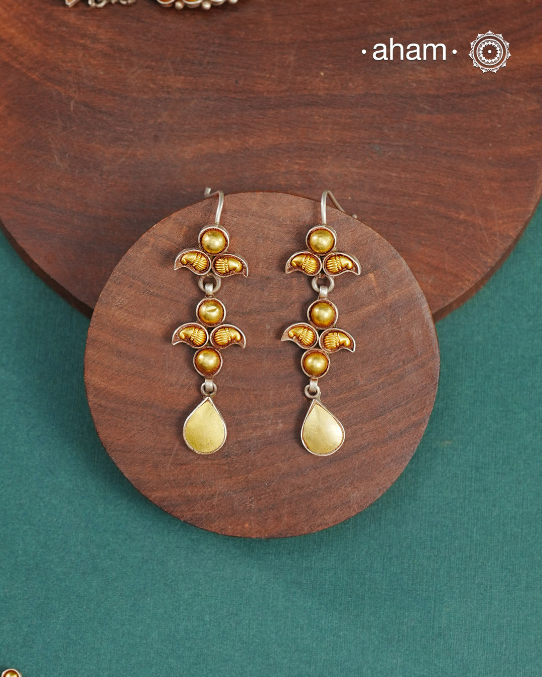 Enhance your style with the timeless elegance of the Dual Tone Silver Earrings. Handcrafted by skilled karigars in Barmer, Rajasthan, this earring features traditional Bandhel work, where a thin sheet of hand beaten 22 carat gold is fused with 92.5 silver and then set on 92.5 silver using a unique wax filling technique. A classic representation of Indian craftsmanship.