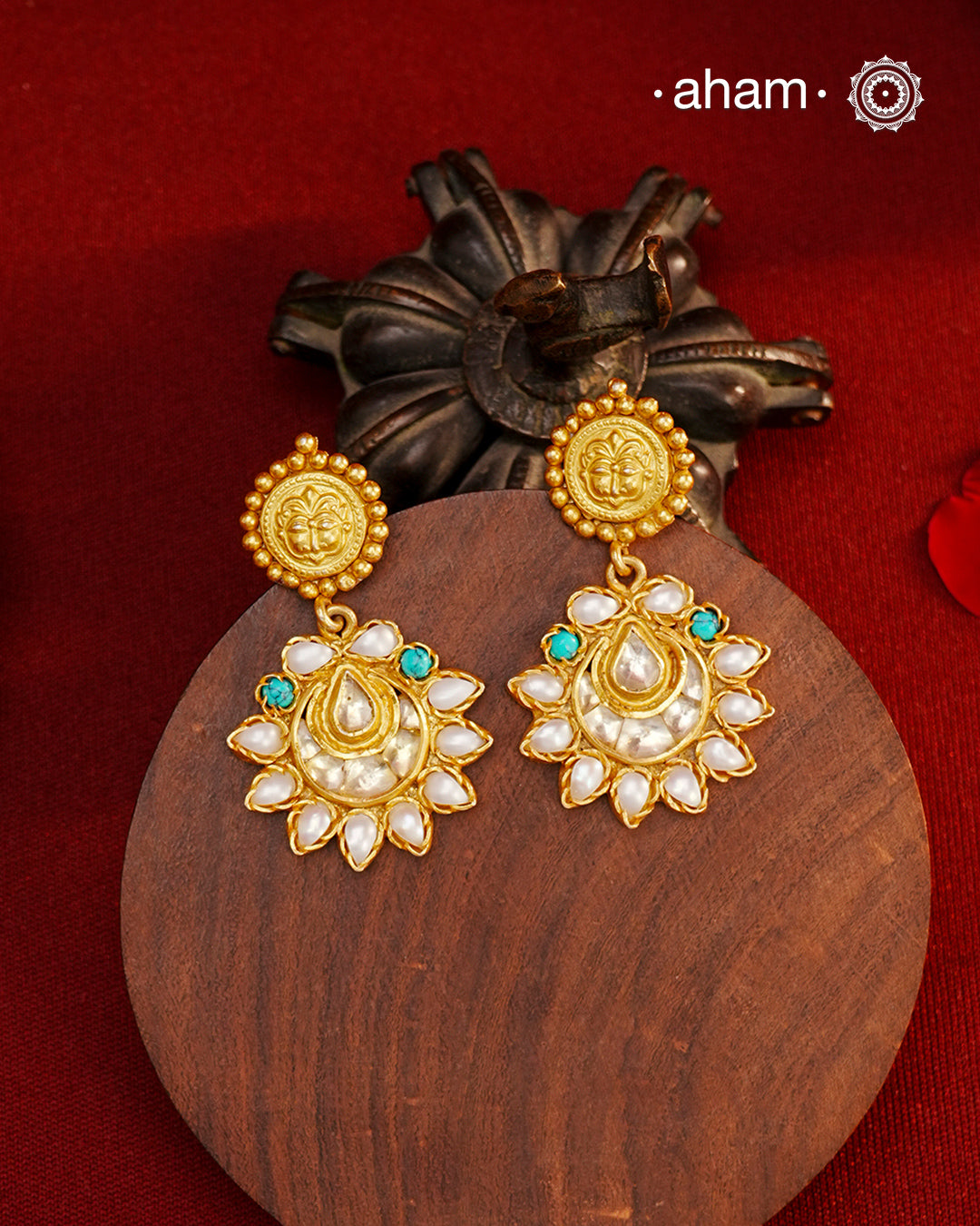 Classic silver gold polish earrings. perfect for festivities.With beautiful turquoise Kundan work and Pearls