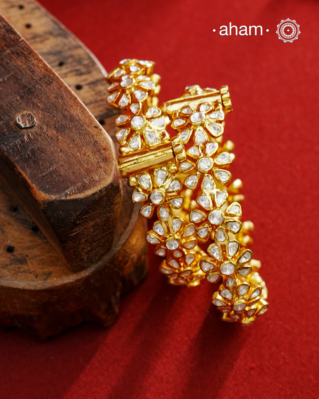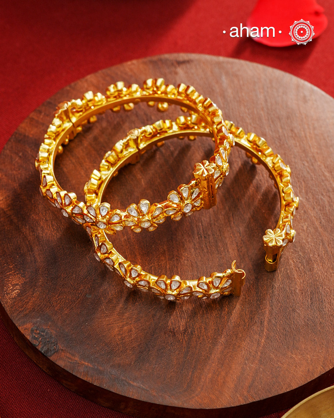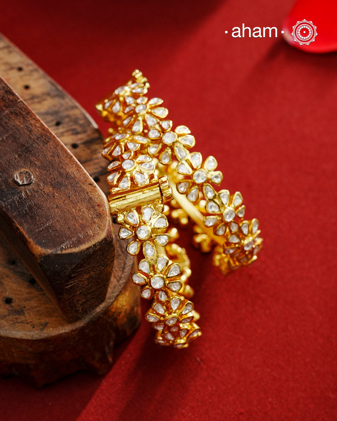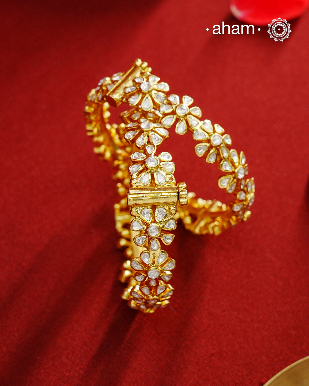 Moissanite Gold Polish Silver Kada (Size: 2.4, Openable)