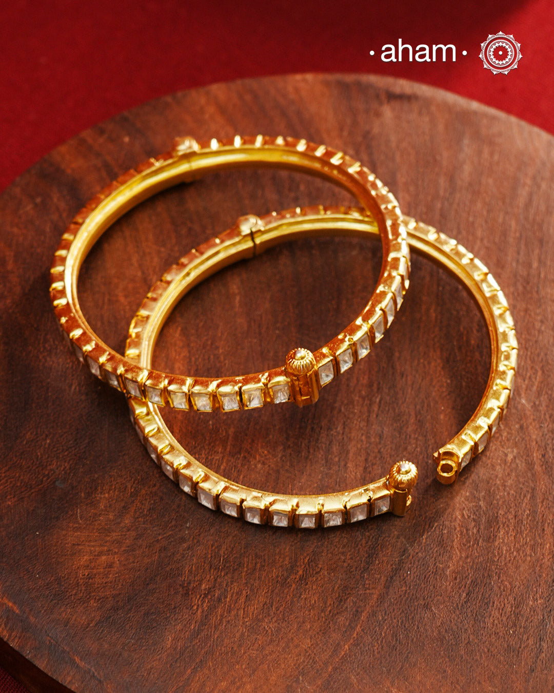 Moissanite Gold Polish Silver Kada (Size: 2.4 Openable)