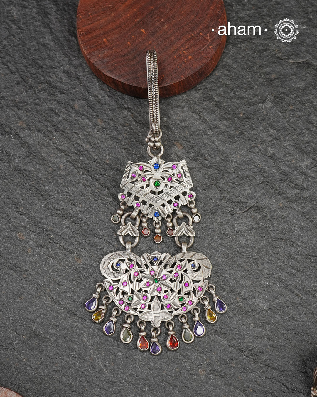Handcrafted key chain crafted silver with beautiful chilai work and stone setting. Also known as Challah, Juda, Chatka and Guchha.