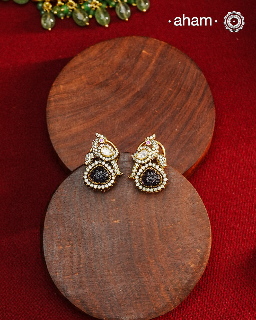These expertly crafted studs feature 92.5% sterling silver with a fine gold polish finish, elegantly set with brilliant moissanite stones and a lustrous deep purple stone drop. Designed to offer lasting shine and sophistication making them a perfect choice for both everyday wear and special occasions.