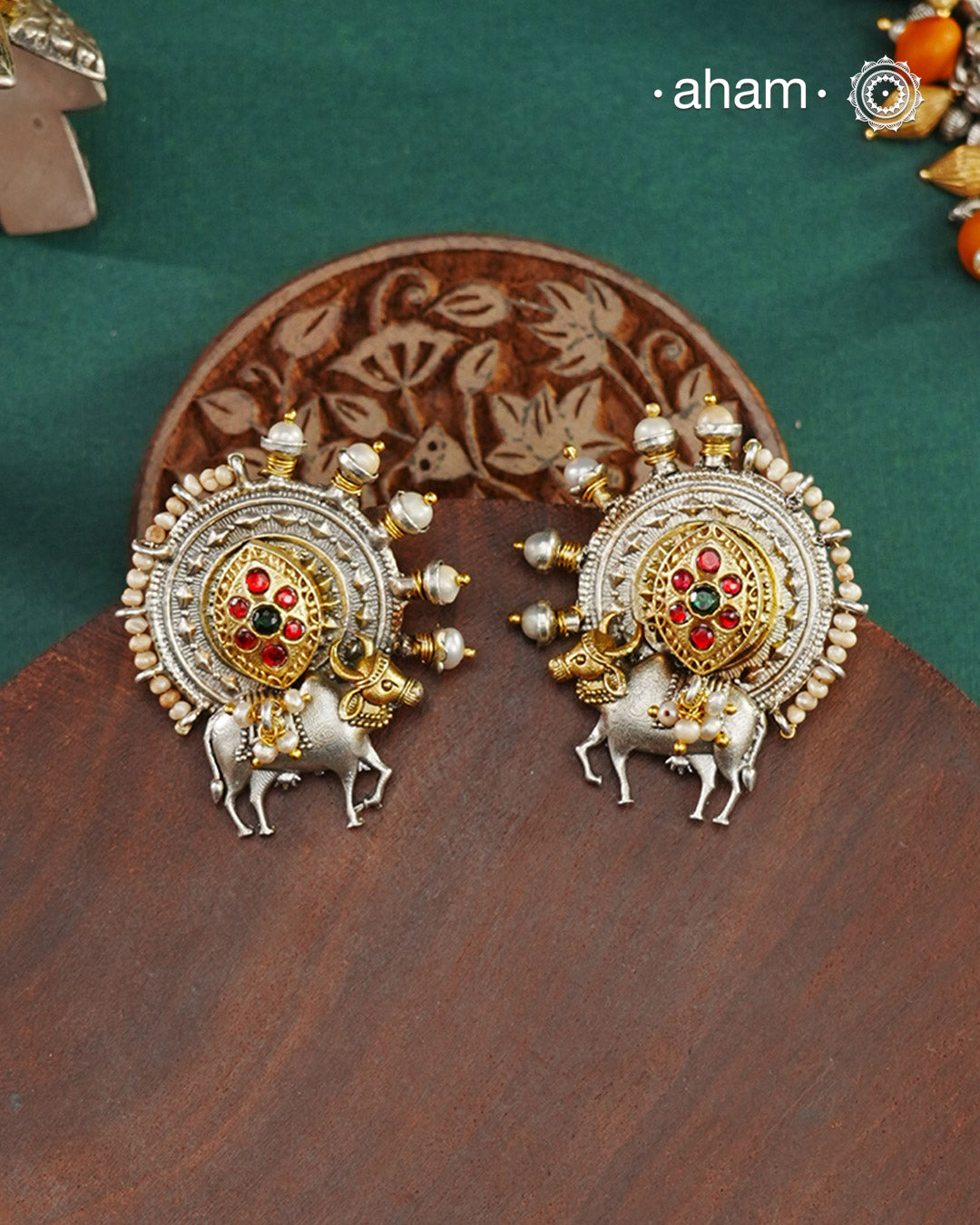 Noori two tone Earrings handcrafted in 92.5 sterling silver with kundan and gold highlights. Style this up with your favourite ethnic or fusion outfits to complete the look.