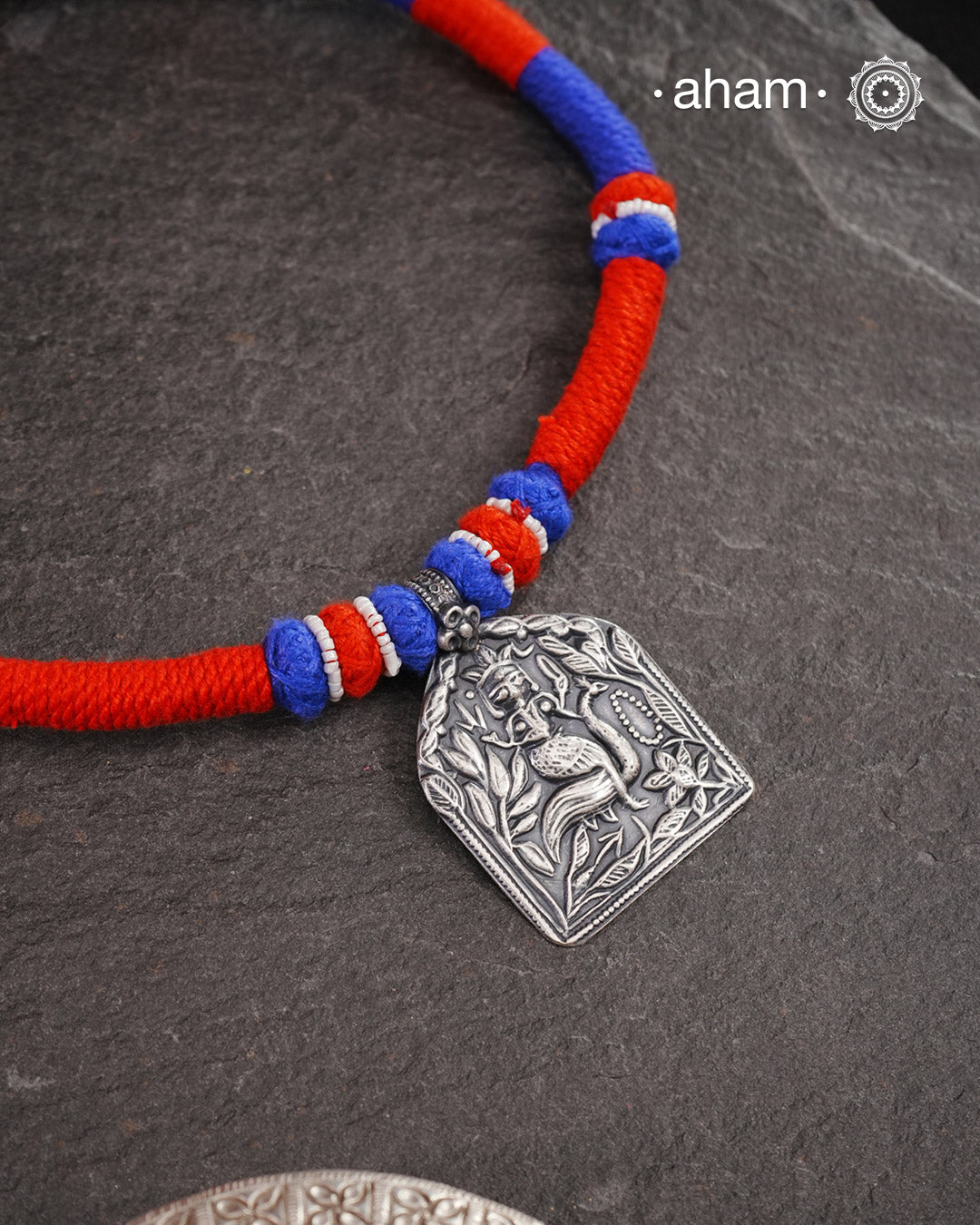 Discover the charm of traditional craftsmanship with our Handmade Lord Kartikeyan 92.5 Sterling Silver Pendant on a beautiful cotton cord.