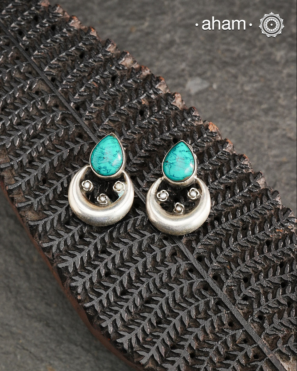 92.5 Sterling Silver Earring with turquoise stone drop.Light weight and easy to wear all day long.